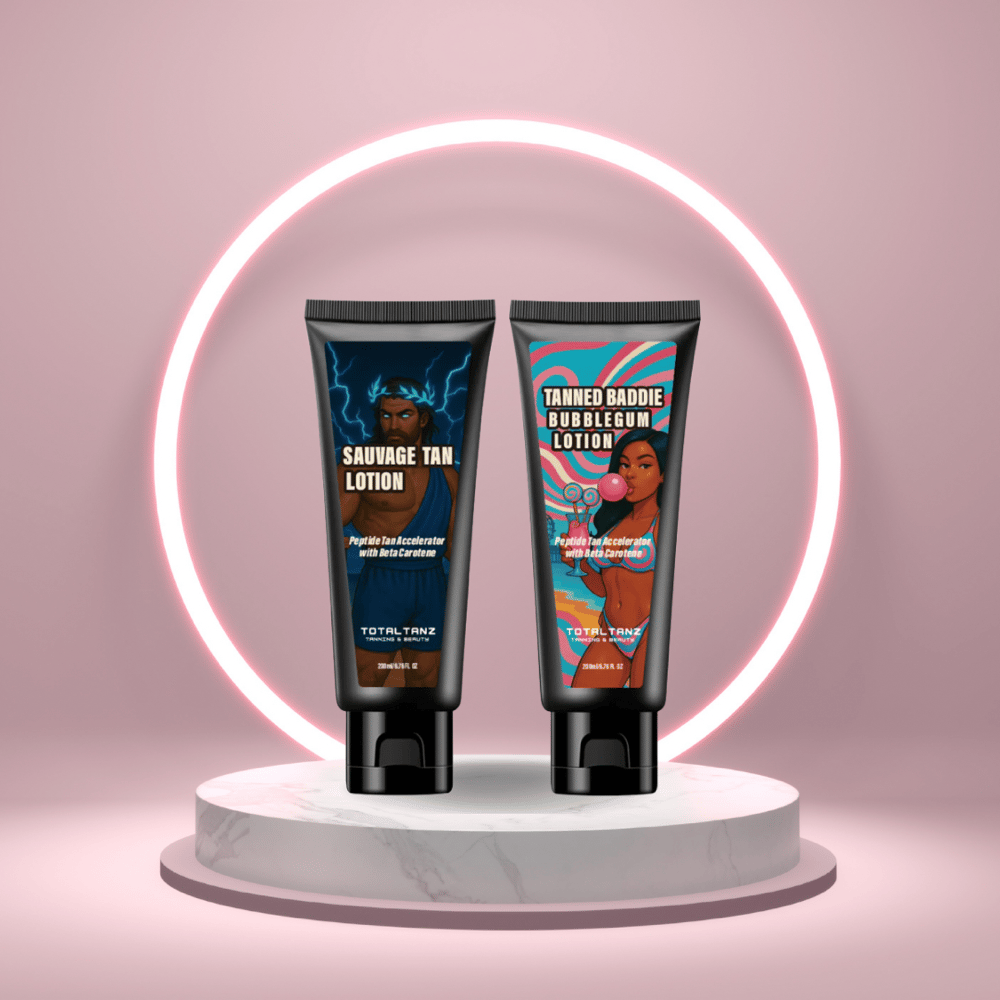 Tan together, glow together. This specially curated bundle includes two premium tanning lotions—one for him, one for her—designed to meet the unique skincare and tanning needs of both partners. Whether you’re hitting the beach, lounging poolside, or prepping for vacation, this couple’s bundle ensures you both achieve that perfect golden glow.
