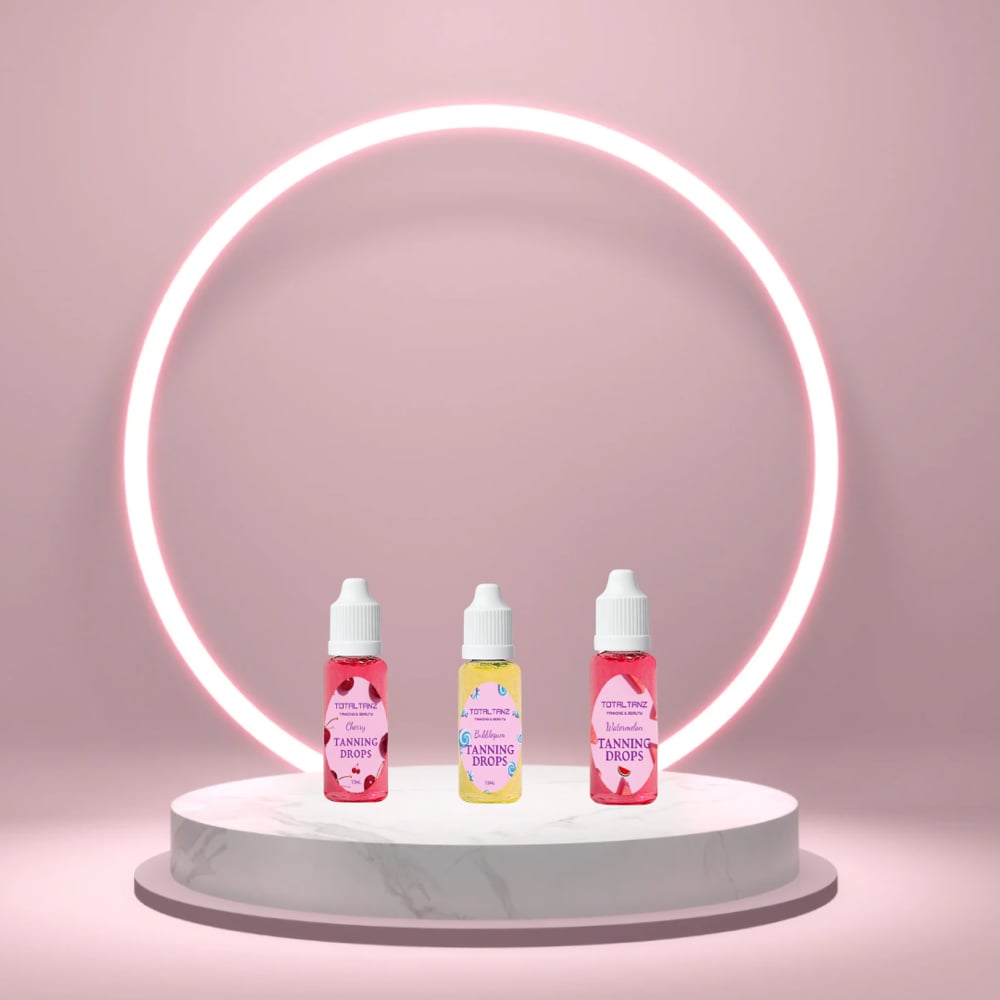 Achieve a gorgeous sun-kissed glow from the inside out with our delicious Flavoured Tanning Drops. Infused with 30mg of active tanning complex in a convenient 15ml bottle, these drops come in two irresistible flavours – juicy Cherry Watermelon and sweet Bubblegum – making your glow-up routine something to look forward to every day.Simply take 3–4 drops under your tongue daily for the first 7 days, then continue with your preferred amount after the first week to maintain your bronzed complexion. Perfect for anyone wanting a natural-looking tan without harmful UV exposure.✨ Key Features: