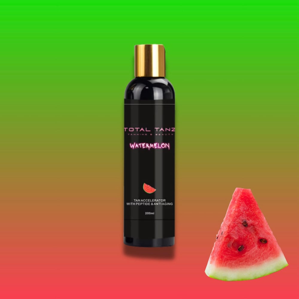 Watermelon tan accelerator with peptide and anti aging properties - get a deep dark tan without the worry of aging your skin. Can be used in the sun and on the sunbeds.